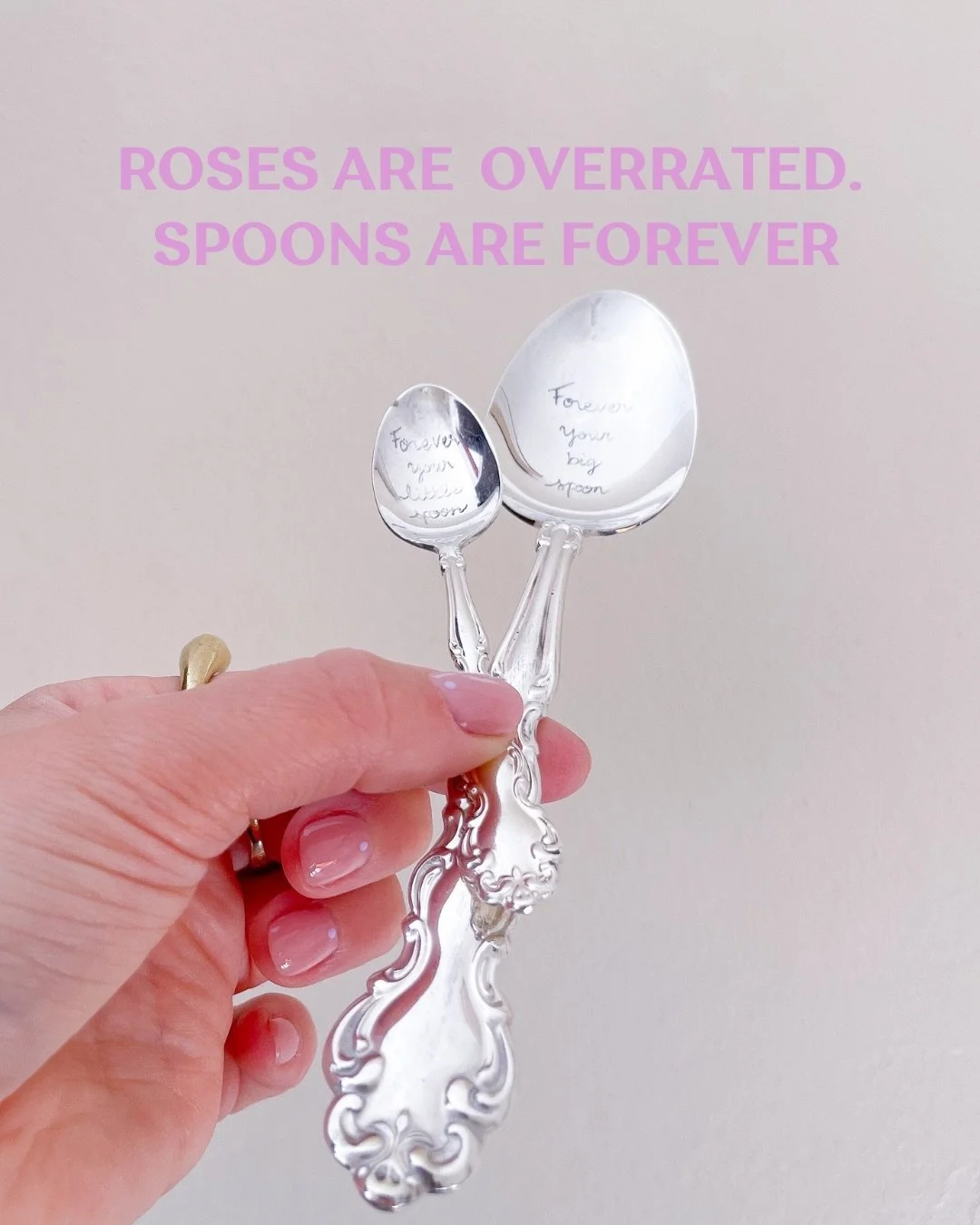 Here at Maison Spoon, we source our silver-plated cutlery in vintage and antique markets across the UK. Our little treasures are all unique, from their delicate floral details to the cheeky & personalised words we hand-engrave on them.